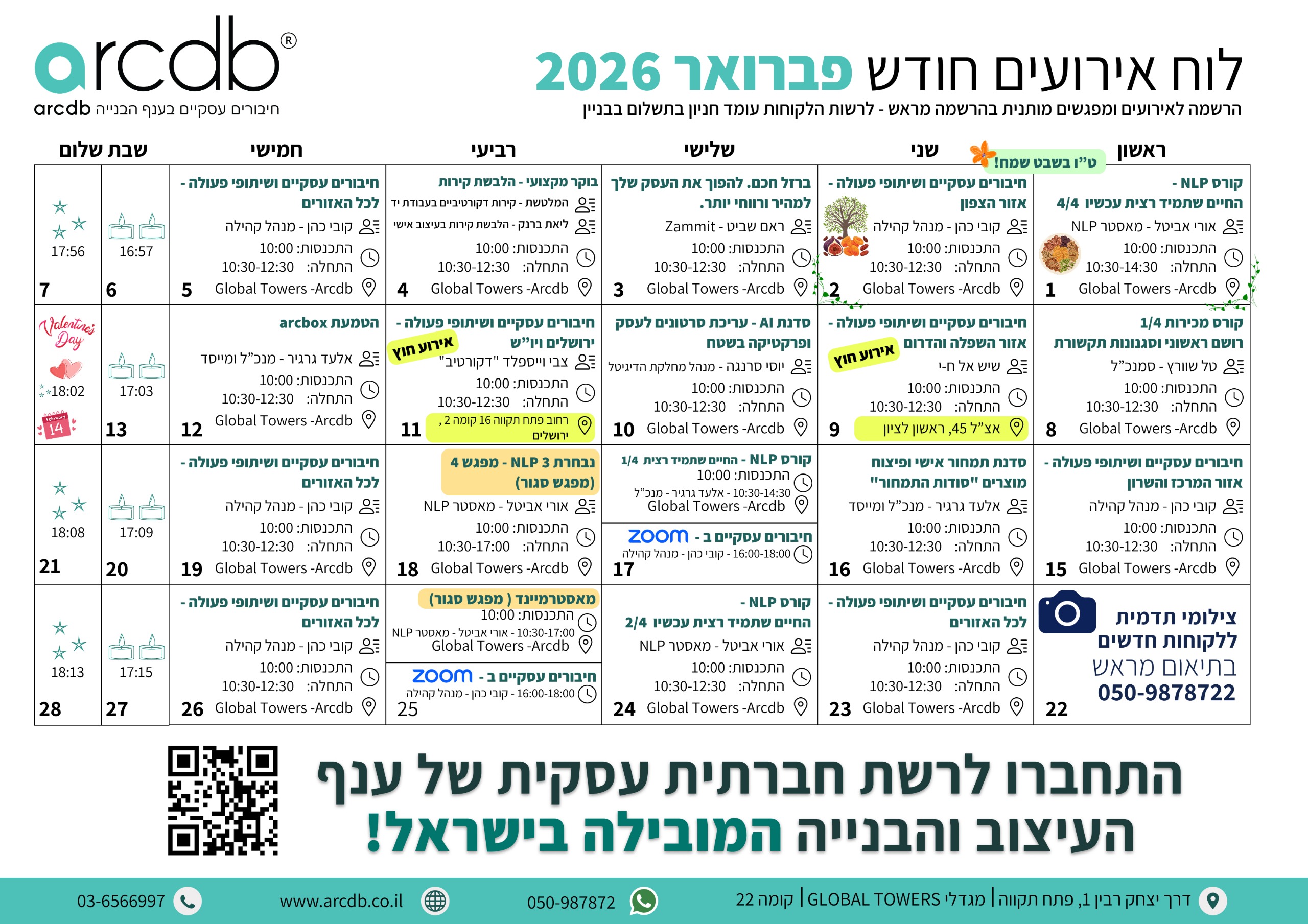 השתתפות באירועים וכנסים, סדנאות מקצועיות, שיתופי פעולה עם הקהילה ומפגשים עסקיים משני מציאות בכל מפגש תכירו אנשים חדשים ותייצרו הזדמנויות עסקיות חדשות עם בעלי מקצוע איכותיים. אצלנו תקבלו את כל הכלים לניהול חכם של העסק: סדנאות בנושא תמחור אישי, שיווק ומכירות, כתבי כמויות , איך מנהלים את המדיות החברתיות הכי נכון שיש, ליווי אישי ועסקי מבלי להוציא כסף מיותר!